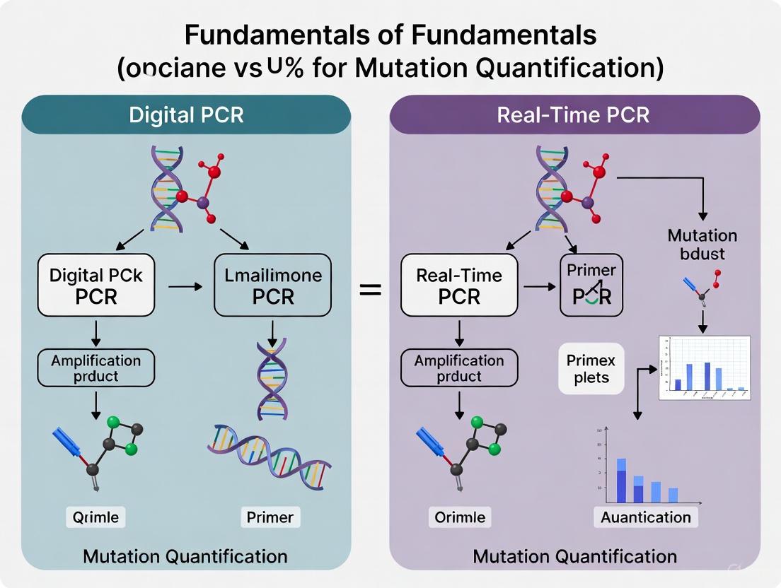 This article provides a comprehensive comparison of Digital PCR (dPCR) and Real-Time Quantitative PCR (qPCR) for the quantification of genetic mutations, a critical task in oncology, liquid biopsy, and drug...