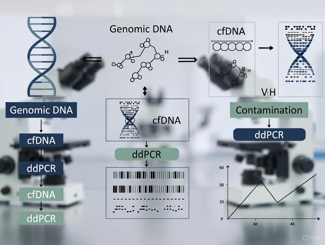 Overcoming genomic DNA contamination in cfDNA samples is not a single step but an integrated, vigilant workflow imperative for generating trustworthy ddPCR data. The convergence of meticulous pre-analytical practices, optimized DNA extraction methods, and intelligent ddPCR assay design forms a powerful defense, ensuring that the true signal of circulating biomarkers is not masked by contaminating noise. As the field of liquid biopsy advances toward earlier cancer detection and minimal residual disease monitoring, the demand for ultra-pure cfDNA will only intensify. By adopting the comprehensive strategies outlined—from foundational understanding to rigorous validation—researchers can significantly enhance the precision and reproducibility of their work. This commitment to quality control paves the way for more reliable non-invasive diagnostics, accelerates drug development, and ultimately contributes to improved patient outcomes in precision medicine.