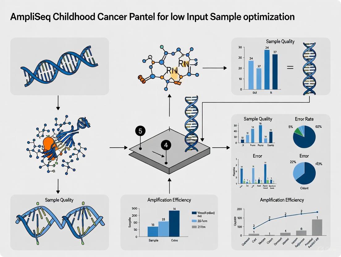 The AmpliSeq Childhood Cancer Panel is a powerful, validated tool for pediatric oncology research that can be successfully optimized for low-input and challenging sample types. By adhering to rigorous pre-analytical sample assessment, implementing tailored library preparation protocols, and applying systematic troubleshooting, researchers can achieve high sensitivity and reproducibility even with limited material. The robust validation data and demonstrated clinical utility underscore its role in refining diagnoses and informing targeted therapeutic strategies. Future directions will involve pushing the boundaries of input requirements further, integrating automated workflows more seamlessly, and expanding panel content as the molecular landscape of childhood cancers continues to be elucidated, ultimately accelerating precision medicine for young patients.